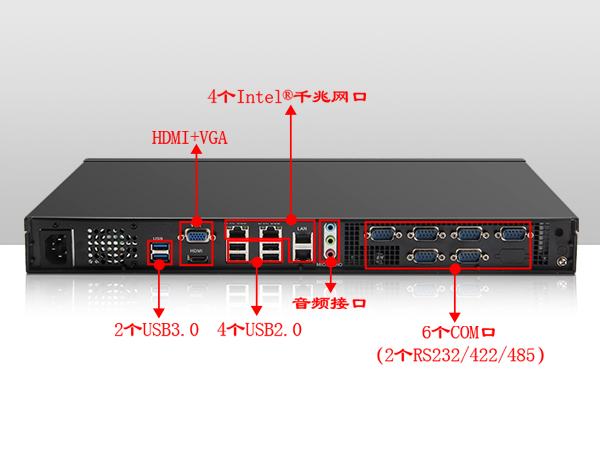 PA视讯工控1U短款工控机,采取酷睿4代CPU、H81芯片组,性能稳定,适用大部分工业场所,可支持16G内存,采用HDMI、VGA双显接口,拥有4个千兆网口、以及6个串口、8个USB口.